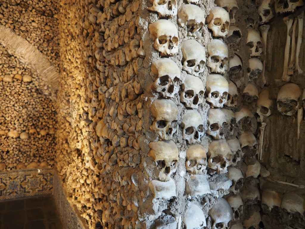 This story arose from our visit to Évora’s Chapel of Bones, where skulls, tibias, and fibulas line the walls in extraordinary patterns. Noticeboards remind us of the brevity of our life-spans. They prompt us therefore to consider what is important to us.